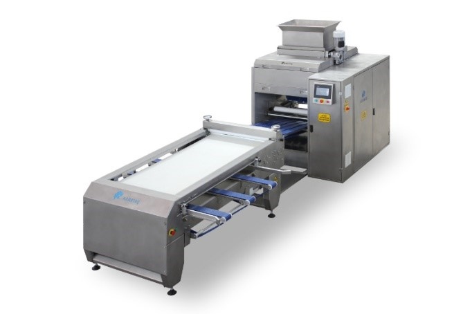 ماكينة قطع العجين للروحلات المكونة من 6 وحدات وآلة توزيع العجين على الصواني تحتوي على نظام تحكم منطقي قابل للبرمجة (PLC)