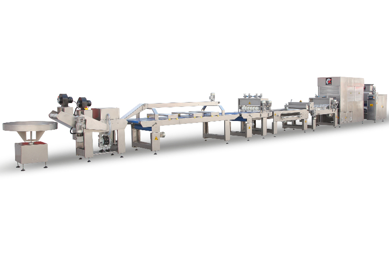 The difference of this line from the Simit & Pastry line is the presence of an automatic tray spreading unit.